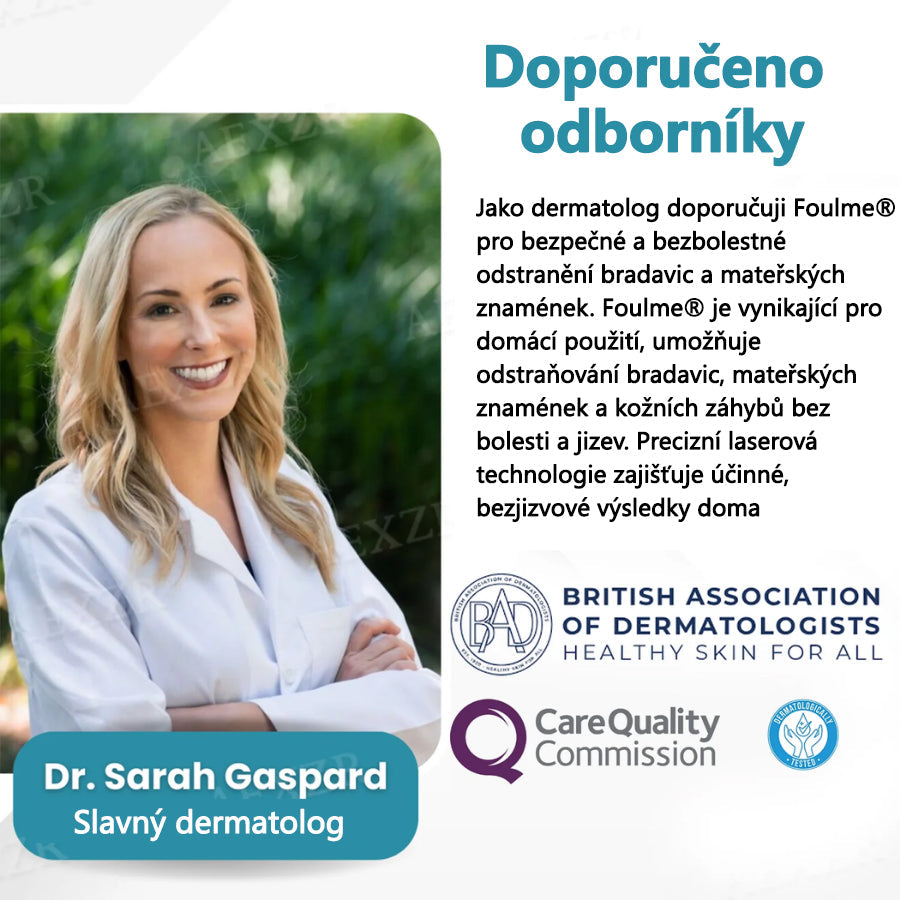✅ Ano! Foulme® je schválena FDA a CE, testována dermatology a navržena pro bezpečné, bezbolestné a neinvazivní domácí použití. Poskytuje výsledky profesionální úrovně bez rizika chirurgického zákroku nebo drsných chemikálií.
